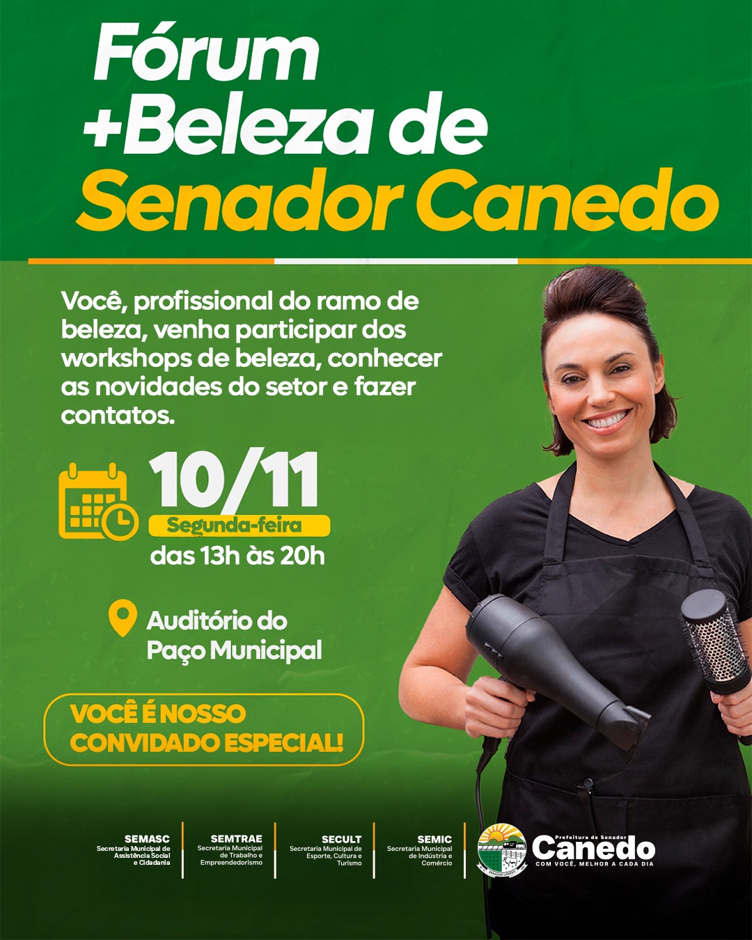 Na próxima segunda (10), Senador Canedo recebe o primeiro Fórum + Beleza, reunindo atrações voltadas ao setor da beleza.