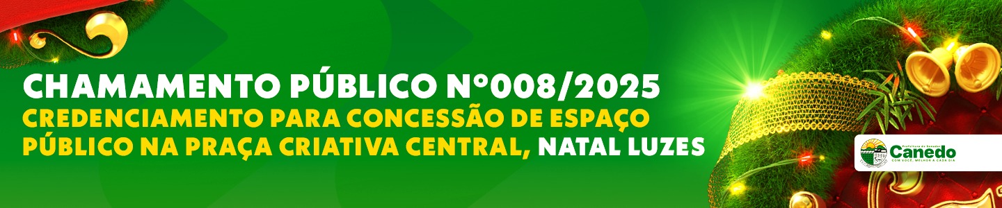 A Prefeitura de Senador Canedo publicou o Chamamento Público nº 008/2025, que trata do credenciamento para concessão de duas vagas de barracas na Praça Criativa Central, destinadas à comercialização de alimentos e bebidas (exceto alcoólicas) durante o período de 12 de dezembro de 2025 a 10 de janeiro de 2026. As estruturas deverão seguir o modelo padronizado definido pela Secretaria de Comunicação e Eventos.