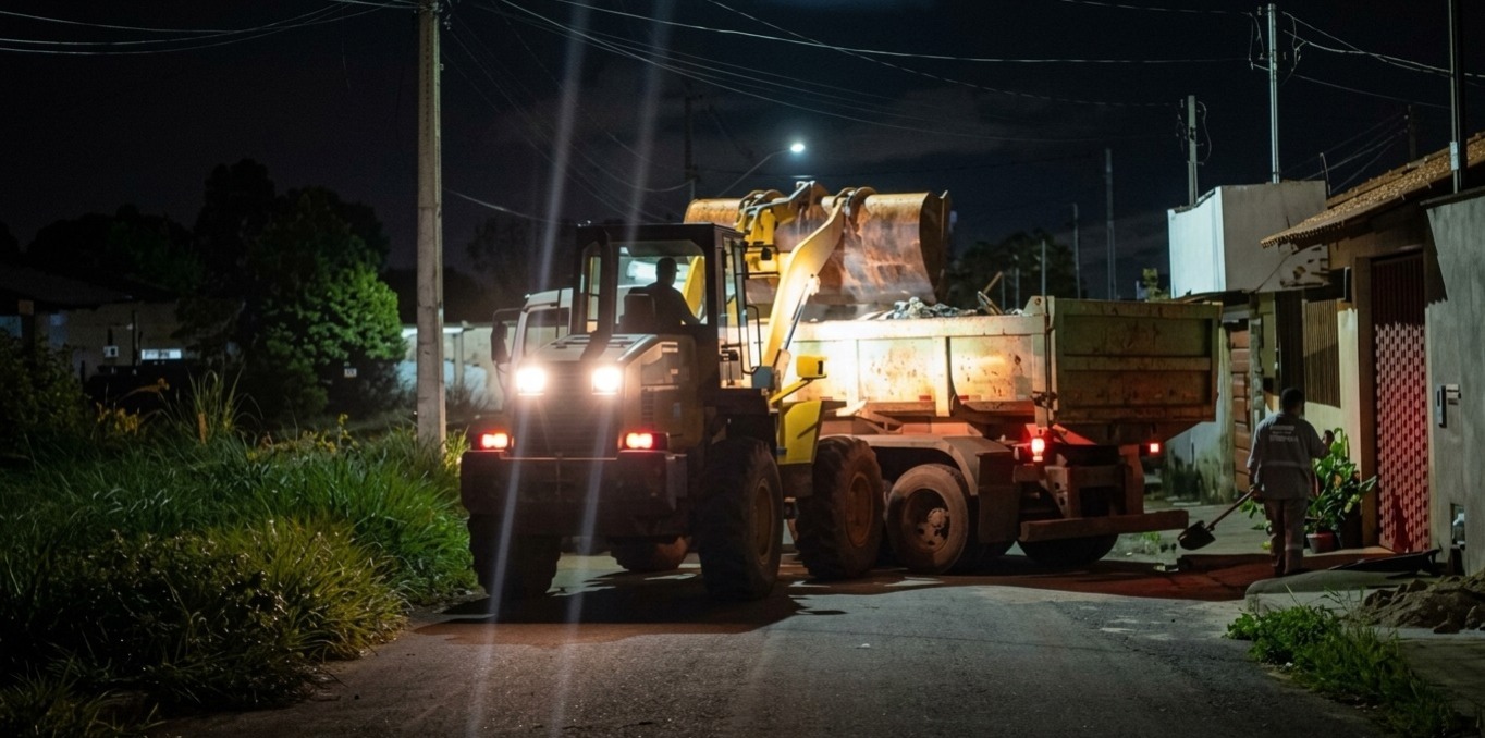 A Prefeitura de Senador Canedo, por meio da Secretaria Municipal de Infraestrutura (Seinfra), está realizando serviços noturnos de remoção de resíduos em diferentes regiões da cidade. As equipes aturam simultaneamente nos bairros Santa Edwiges, Monte Azul e Dona Genesi, com o apoio de máquinas e caminhões para agilizar os trabalhos e garantir maior eficiência na limpeza das áreas atendidas.