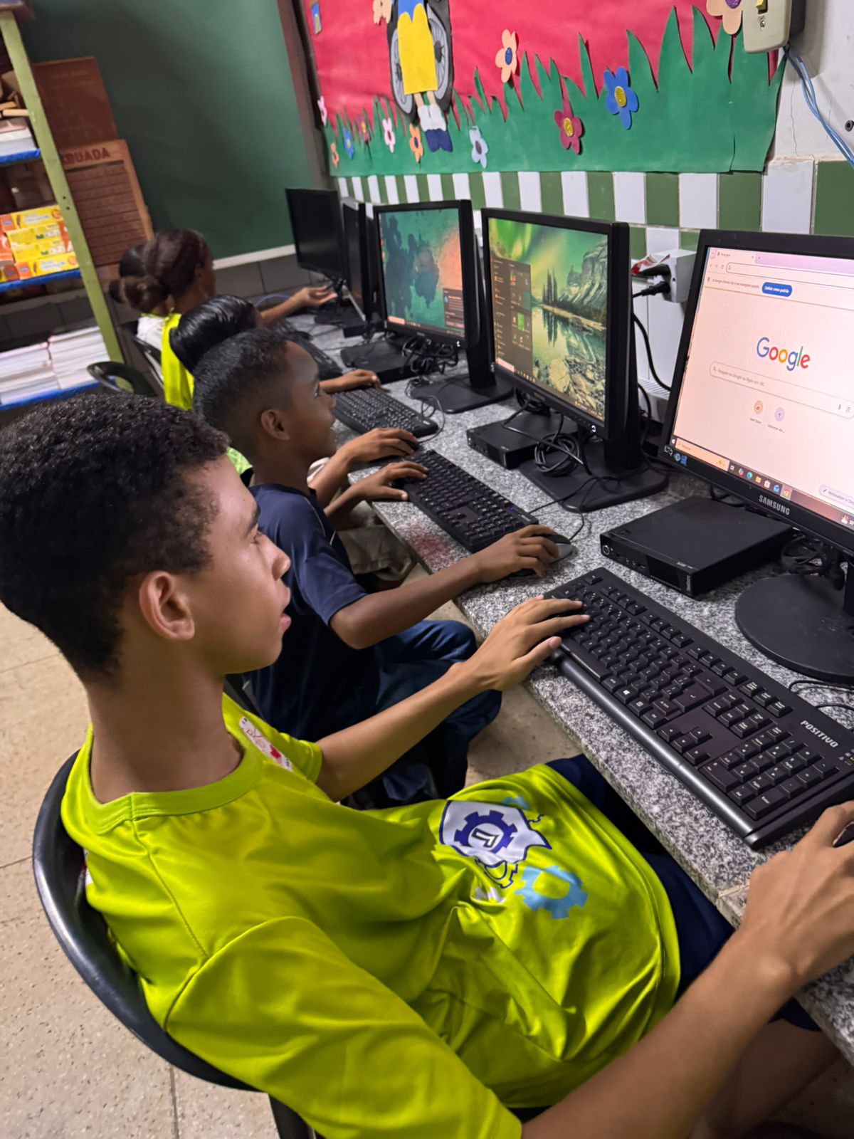 “Tem gente que nunca nem viu um computador. Isso aqui é bom demais pra gente estudar e aprender. Ajuda quem não tem aparelho em casa e precisa pra fazer os trabalhos da escola.”