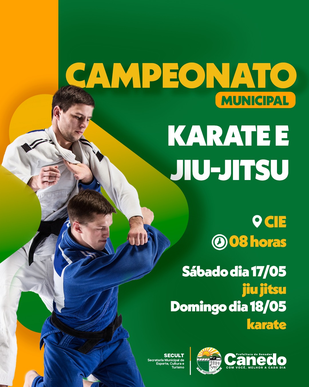 Neste fim de semana, dias 17 e 18 de maio, Senador Canedo será palco de mais uma celebração do esporte. A Prefeitura, por meio da Secretaria Municipal de Esporte, Cultura e Turismo (Secult), realiza o Campeonato Municipal de Karatê e Jiu-Jitsu, reunindo mais de 500 atletas da cidade.