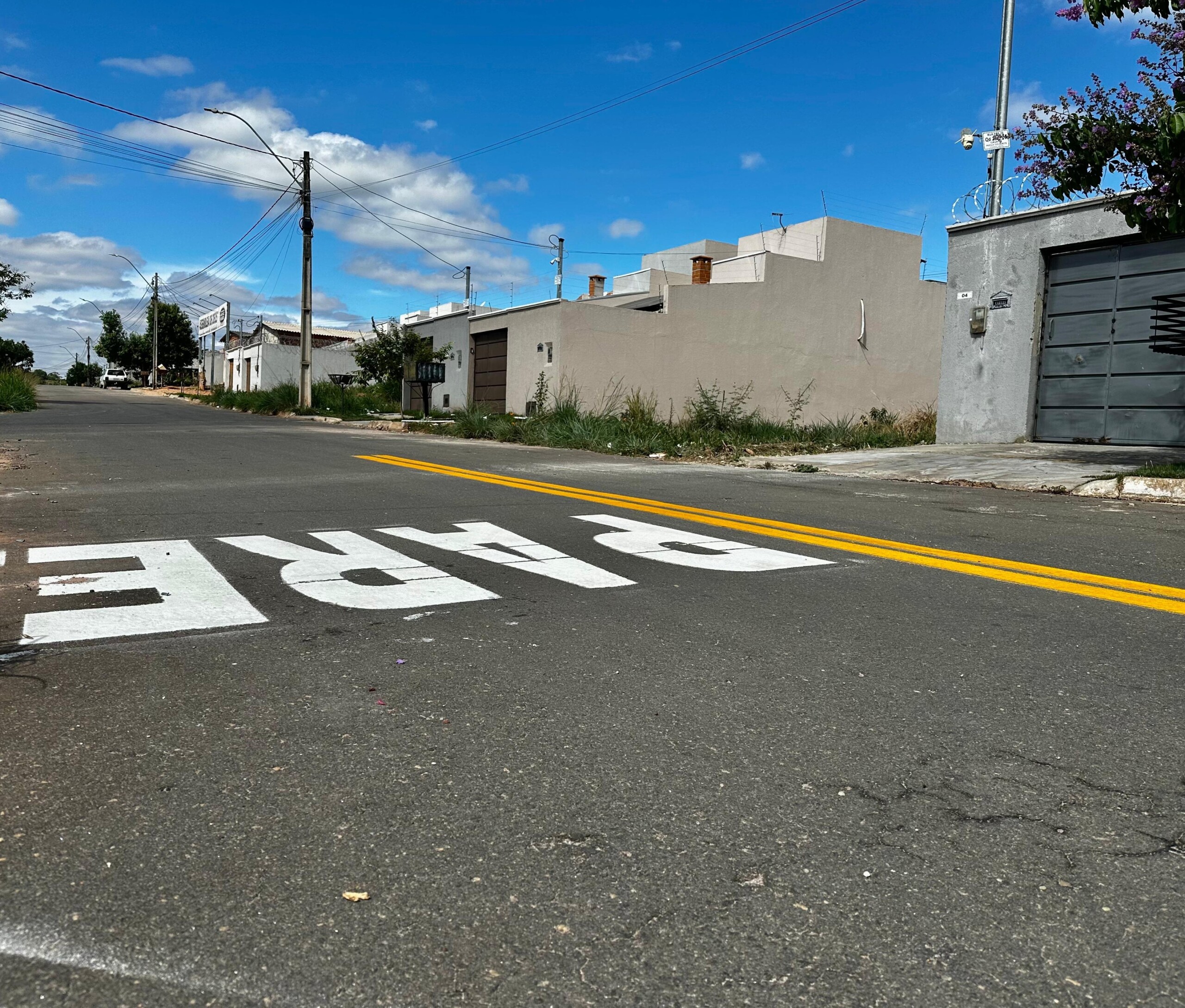 A Superintendência Municipal de Trânsito (SMT) de Senador Canedo realizou a pintura viária no Residencial Parque dos Buritis.